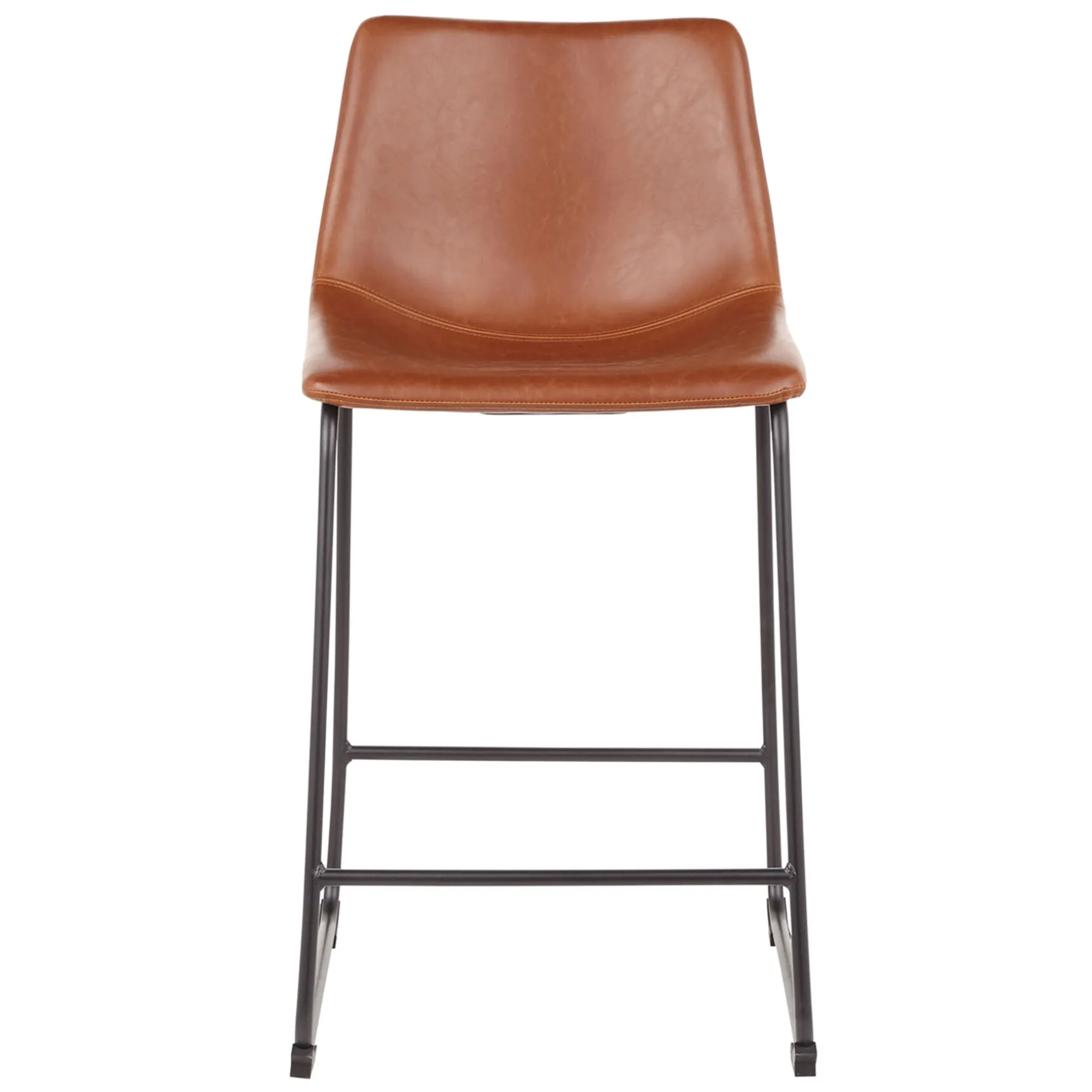 With This Bar And Counter Stool, The Kitchen Island Never Looked So Good! Pairing Contemporary And Industrial Appeal, The Design Lends Style With Its Bucket Seat And Clean Lines. Leg Glides Prevent Your Floor From Suffering Scratches And Scuffs, While Foam-Filled Cognac Faux Leather Upholstery Offers An Inviting And Eye-Catching Feel.